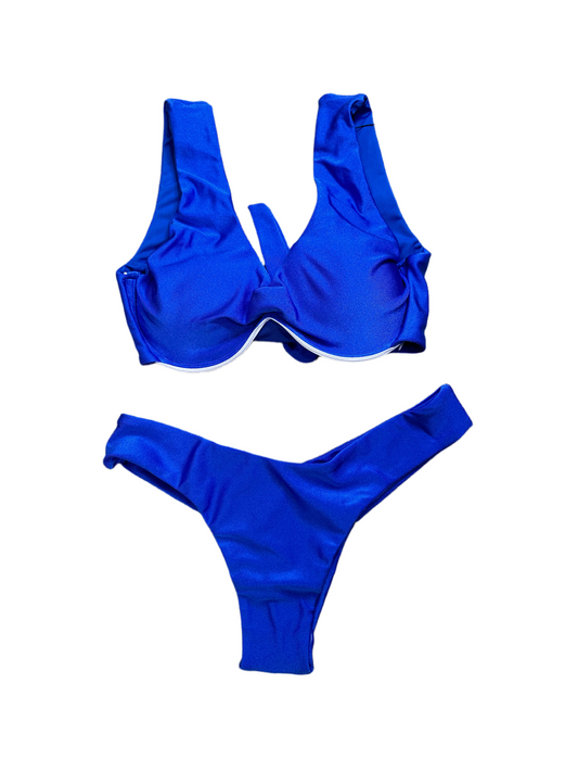 Blue Macaw Set - Triangle Top with Removable Pads and Thong Panties